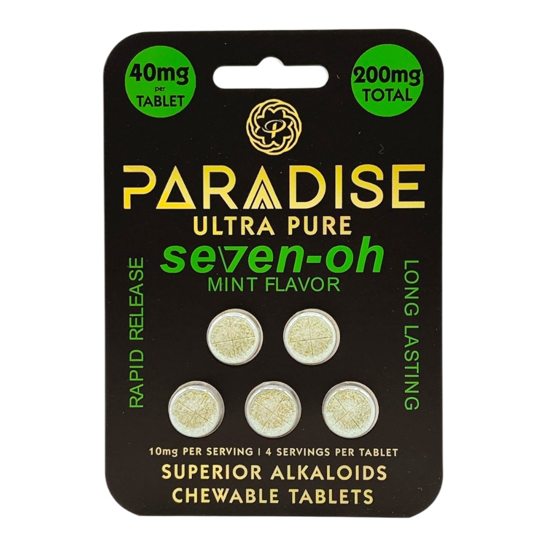 Paradise 7-OH 40mg tablets delivers fast-acting, high-potency support for experienced kratom users. Each chewable tablet contains 40mg of 7-hydroxymitragynine, one of the most powerful naturally occurring kratom alkaloids. Designed for precise control, each tablet is segmented into four 10mg servings—perfect for microdosing or adjusting your intake based on your needs.