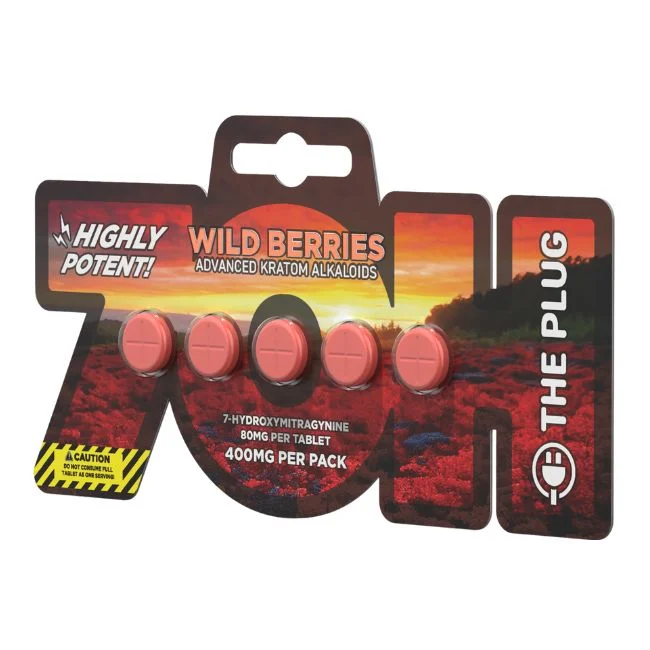 Meet The Plug 7OH-Hydroxy Tablets—a straightforward tablet format designed for clear labeling, simple count control, and everyday portability. Each tablet is clearly labeled at 30mg of 7OH-hydroxy mitragynine, offered in two flavor-inspired options: Wild Berries and Arctic Mint.